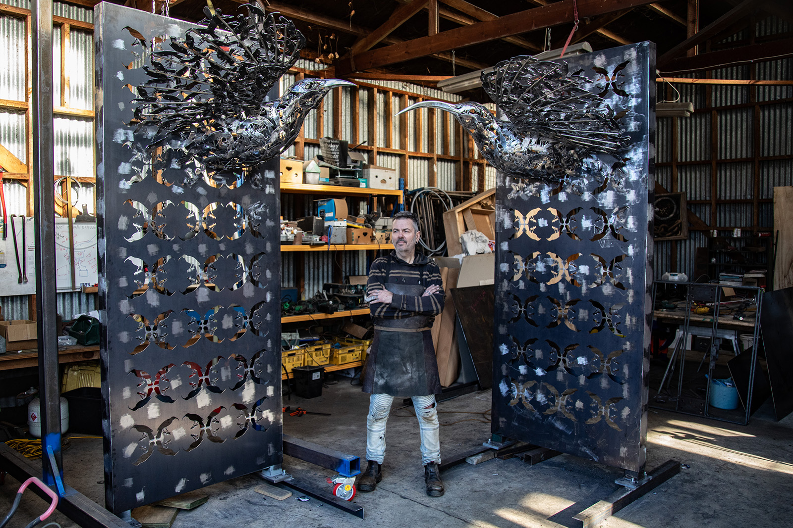 Sean Crawford is a successful New Zealand sculptor. Originally Wellington-based, but now living and working in the rural Wairarapa – his works are found, and sought after – both nationally and overseas. Sean’s inspirations are as varied as they are evolving. His approach toward his art practice is always narrative-driven and frequently highlights environmental and social themes. History plays an important role – with some of Sean’s sculptures reflecting on New Zealand’s colonial past, whilst also being influenced by the Gothic storyteller Edgar Allen Poe and the paintings of NZ artist Bill Hammond. Along with public art works around New Zealand, Sean’s work ‘The Cloak of Remembrance’ sits outside the New Zealand embassy in Washington DC. It’s a sign that his ideas, although largely home-grown, are both respected and relevant on the world stage.