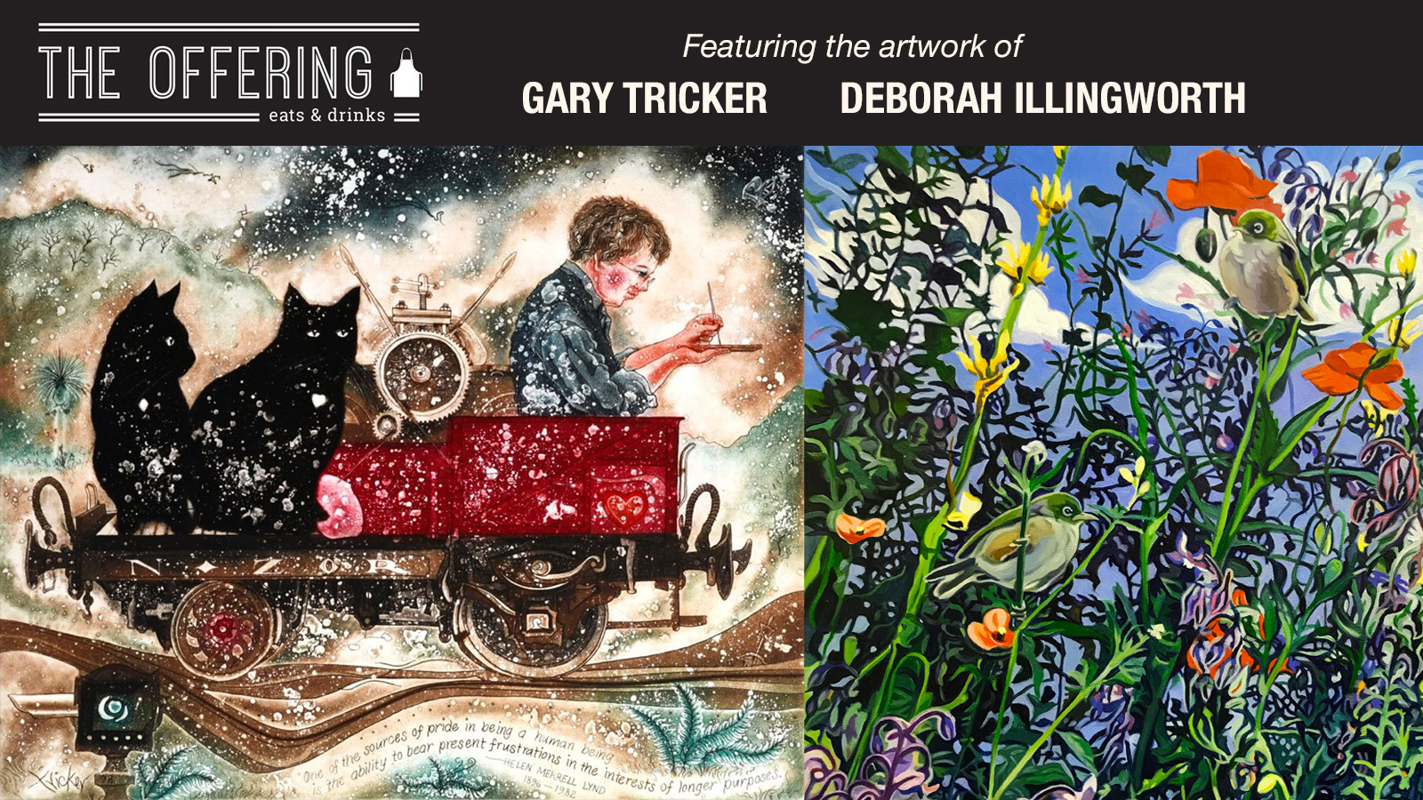 Stop by The Offering cafe for a coffee or a meal over the ArtTown weekend, and see several artists’ work on display, including: