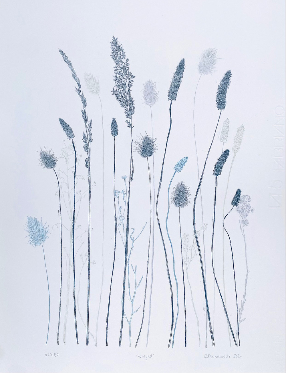 The printmaking process involves making design ‘plates’ which are then hand printed through my printing press using relief and intaglio printing methods. Printmaking requires you to be both considered and methodical; you must slow down and contemplate your intent.