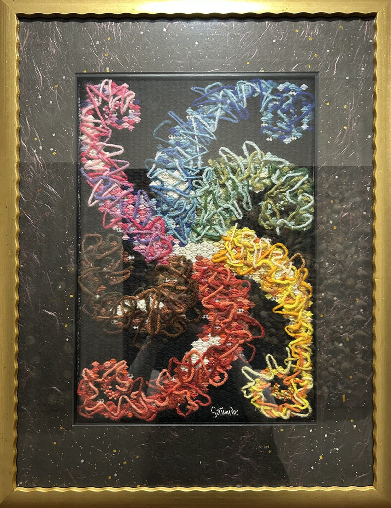 Needlework is a demanding medium, but its beauty lies in its flexibility—you can pick it up or put it down without the need for setting up or cleaning up. The intricate detail that emerges in a small space continues to fascinate me. Sadly, due to declining eyesight, I’ve had to step back from larger textile pieces.